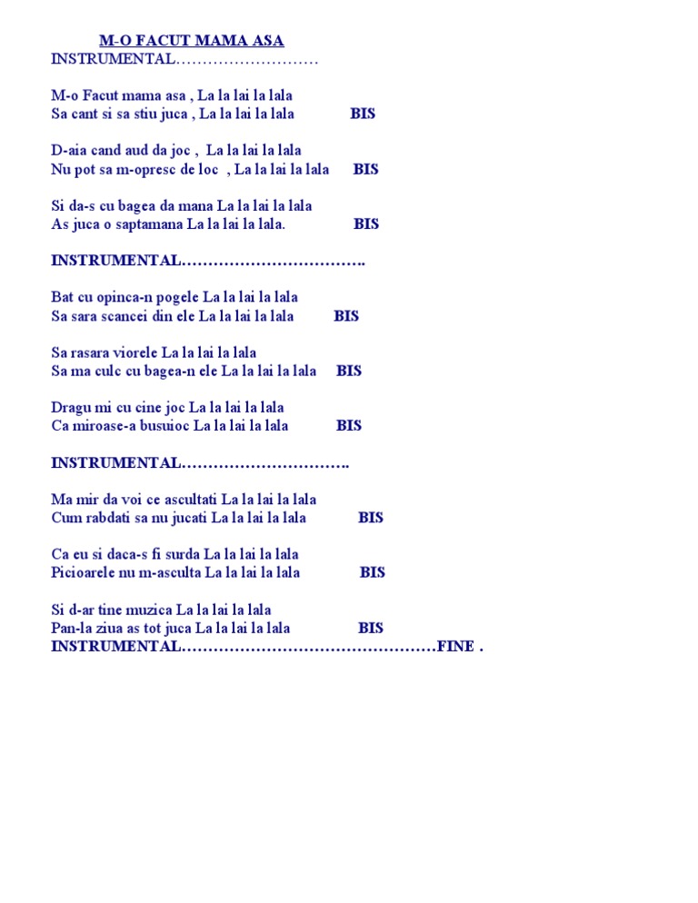 Iti multumim foarte mult ca ai ales sa descarci mita de la bals asa m a facut mama de pe site ul nostru si speram ca vei reveni in curand sa descarci si alte melodii asemanatoare. Si mai stiu ca publicul nu vreau sa ma asimileze unui jucator de baschet inalt si desirat ci unui personaj foarte bine imbracat. M o facut mama asa la la lai la lala sa cant si sa stiu juca la la lai la lala d aia cand aud da joc la la lai la lala nu pot sa m opresc de loc la la lai la lala si da s cu bagea da mana la la lai la lala as juca o saptamana la la lai la lala bat cu opinca n pogele la la lai la lala sa sara scancei din ele la la lai la lala. Asta intre craciun si anul nou.